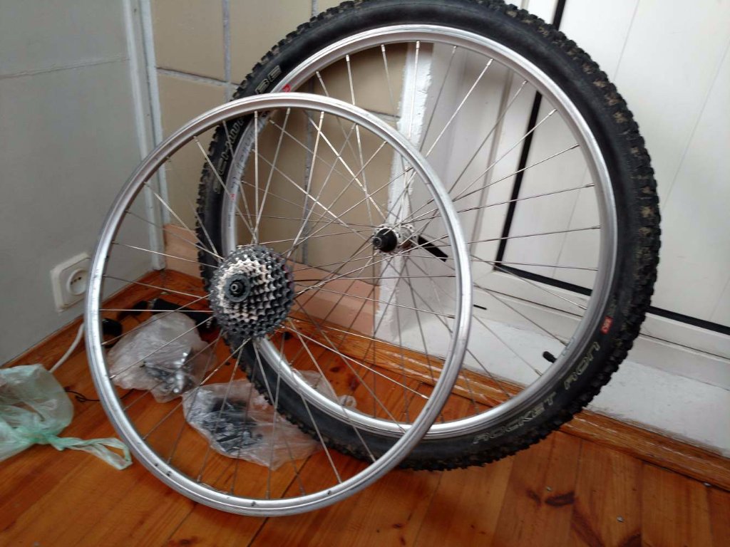 Колеса без резины (на фото одно с) но с эксцентриками ( на фото одно без :)) Резина тоже продается но или как комплект к велу ( https://velokyiv.com/forum/viewtopic.php?f=102&t=167848 ), или за небольшую доплату.