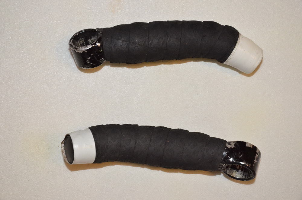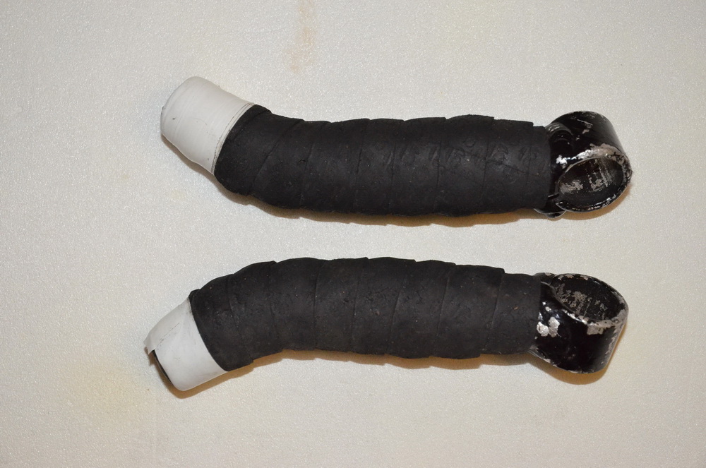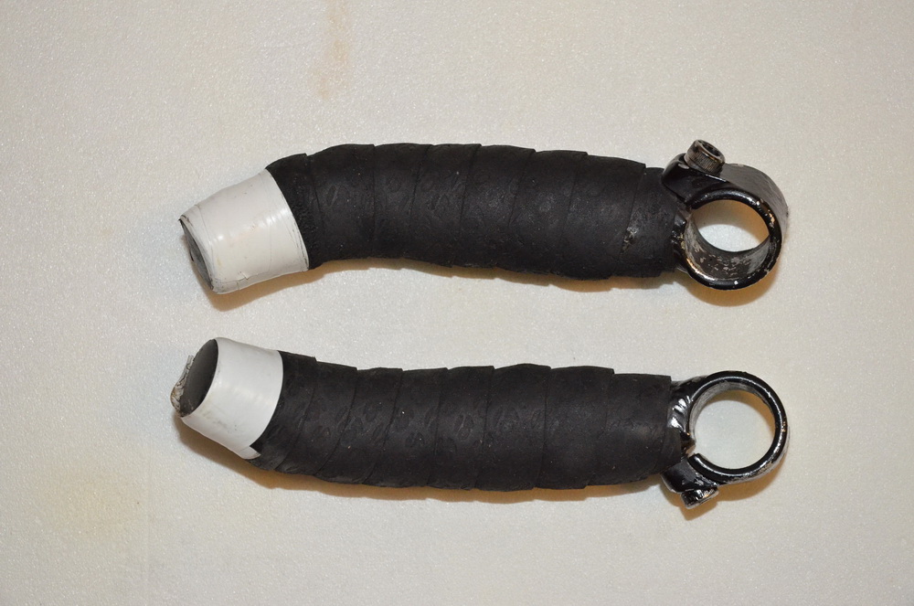 Рожки алюминиевые, крашенные в домашних условиях в черный цвет. Позже дополненные бмоткой Бонтрагер (неопрен с пробковым деревом).