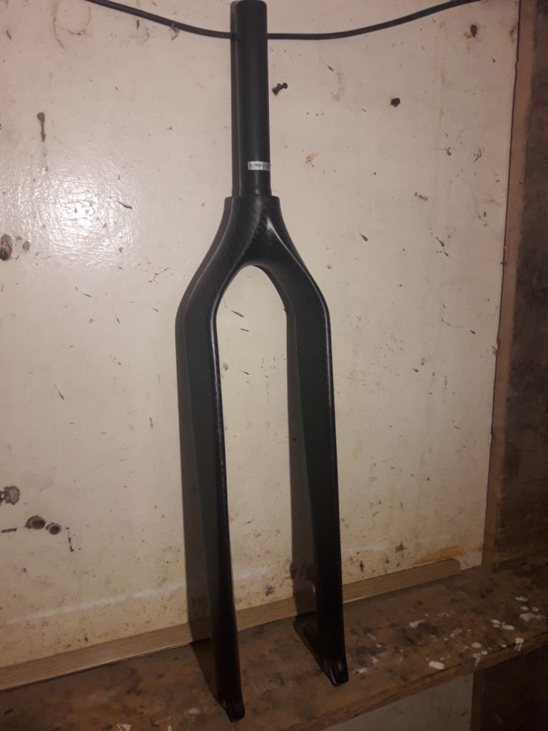 Продам карбоновую вилку, дропауты с металическими вставками, под геометрию 100 мм вилки, якорь вкручен, без трещин и сколов, состояние хорошее, шток 1.1/8, длинна штока 163 мм, вес 530 грамм с якорем, можно использовать с 26, 27.5 и 29 колесами, кольцо к рулевой есть