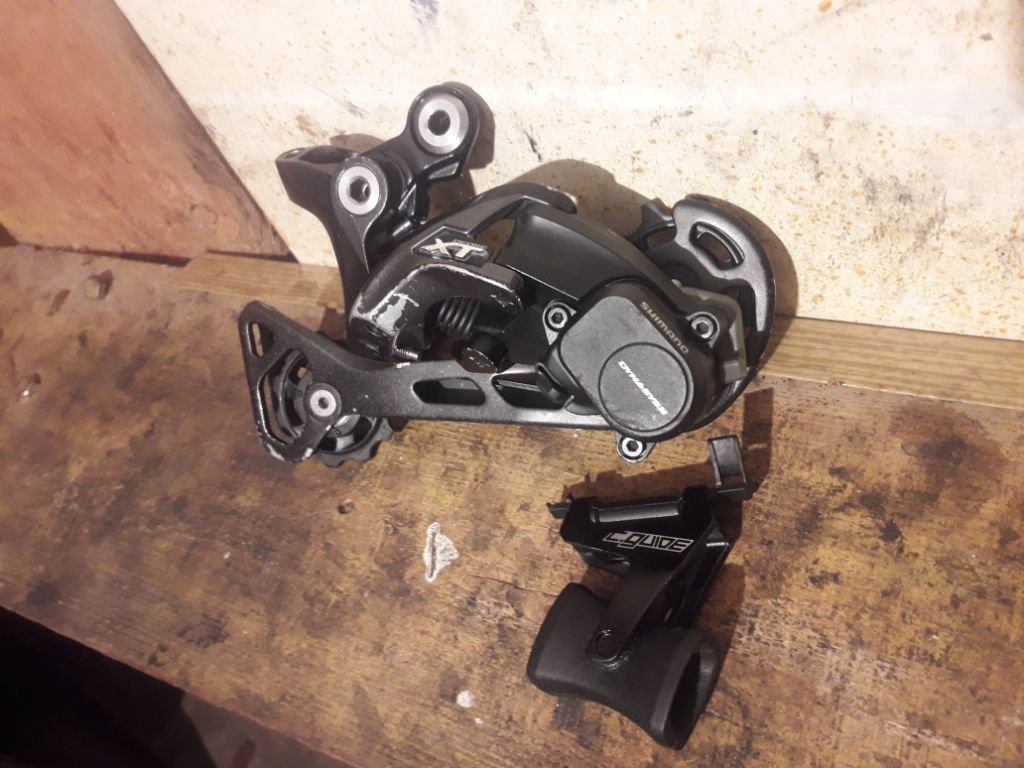 Замечательный задний переключатель shimano xt 8000 на 11 скоростей, работает отлично, продаю, так как думал перейти с 9 на 11ск, так и остался на 9 ск., в подарок успакоитель цепи, с одной стороны держак хомута отлетел, держится на самой платформе, с другой стороны все ок