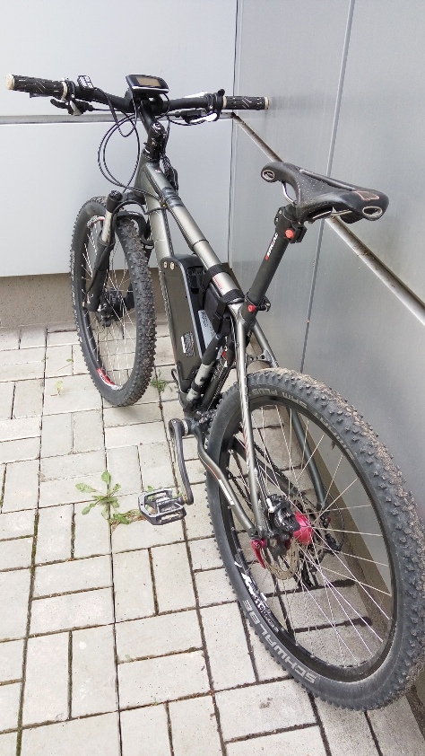 Велосипед в эксплуатации с 2012-го года. В процессе были выброшены стоковые тормоза (замена на Shimano SLX), седло (замена на Selle Italia maxflite gel flow), колеса (замена на Mavic 319), втулки (замена на Novatec), шатуны (замена на SLX), педали (замена на Shimano Saint). В общем, полвелика выбросил, и заменил на нормальные компоненты. Трансмиссия в порядке (каретка новая, с пробегом около 1000 км, шатуны/кассета - пробег около 3500-4000 км). Месяц назад был поставлен электро-комплект от Evel на 350W с батареей 36В 11Ач - работает отлично! При моем весе в 73 кг позволяет по городу проезжать 30-35 км без педалей (с подъемами), в режиме педал-ассист хватает на 50-60 км. Скорость - 32-34 км по прямой, в зависимости от степени зарядки аккумулятора.