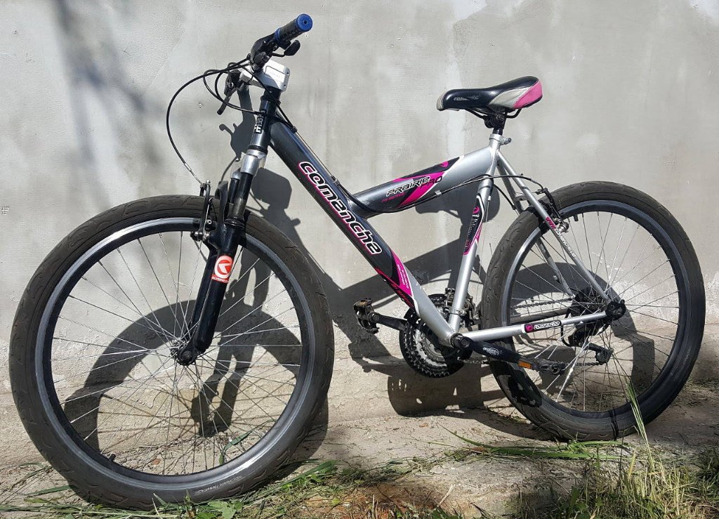 Резина Kenda Flame 26-2.125, вилка Kellysbikes подвижная но весом 90+кг продавливается почти до упора.