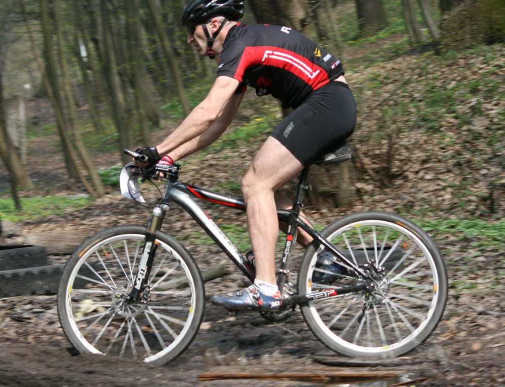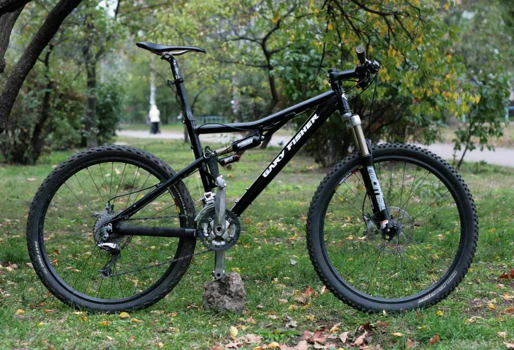Придбав приблизно у 2000 б/в сталевий фреймсет рама/вилка (в ті часи вилка у стоці ще була жорсткою) та почав обвішувати без чіткого розуміння бажаного (добре що не вистачило грошей на підвіс команч "ураган"...), допомогли поради адекватного продавця, касета семерик, манетки - якісь самі дешеві гріпи, які швидко зламалися та були замінені на альтус, колеса зібрані на втулках паралакс (алівіо), хз які шатуни б/в, але рівнем вище у порівнянні зі стоком, довга підсидільна труба алю калін (рама була замала, зі стоковою короткою зламав та заварив), про інше не пам’ятаю. Довго шукав фото і ледве знайшов.