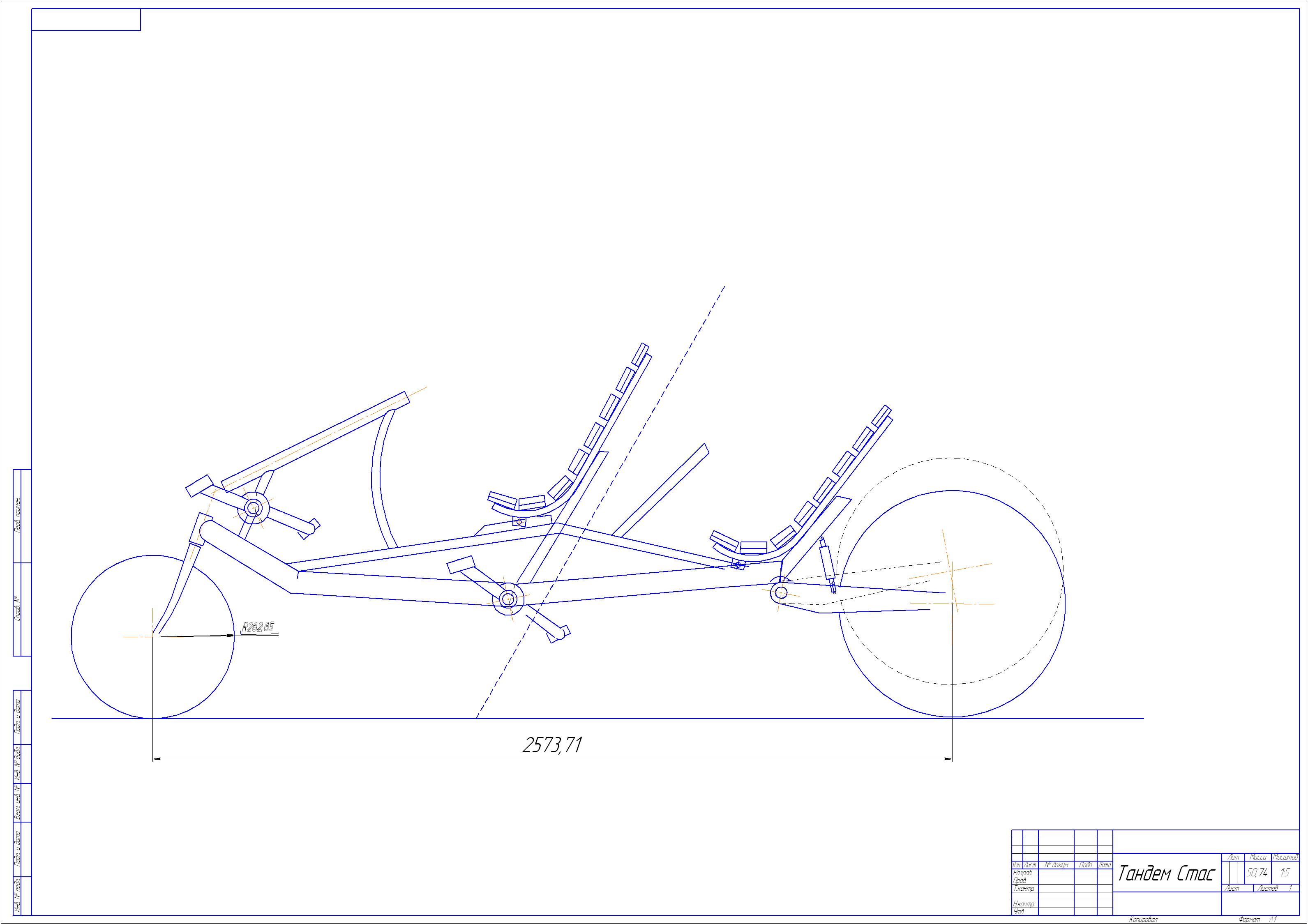 В третьих, при такой длине рамы углы поворота тандема не укладываются в концепцию велосипеда, и возможен сильный уклон при поворотах и потеря равновесия, для такой конструкции больше подойдет трайк 1-2 конструкции.