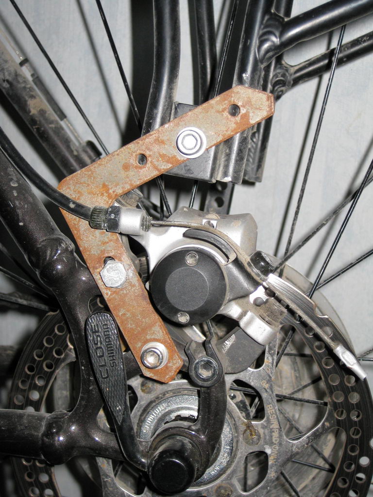 Якщо цікаво, я завтра напишу як я впорався з цією проблемою на свому Gary Fisher Wahoo disc зі стандартними Шимановськими механічними дисковими гальмами.