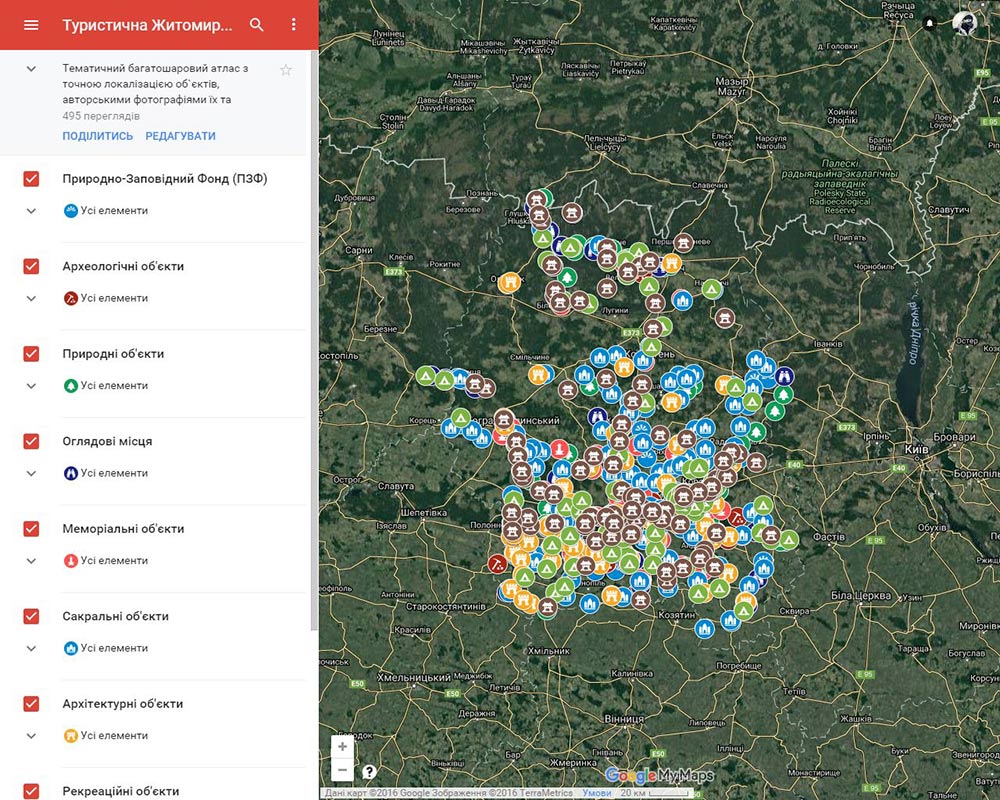 Дорогі колеги, Житомирщина відтепер має свій туристичний атлас на базі інтерактивних карт Гугл.