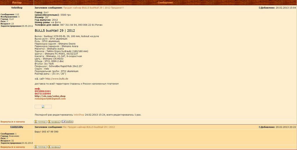 А уже потом выбирал новый вел. Сейчас вот уже третий брать думаю, в этот раз двухподвес (хочется кататься больше офф-роад).