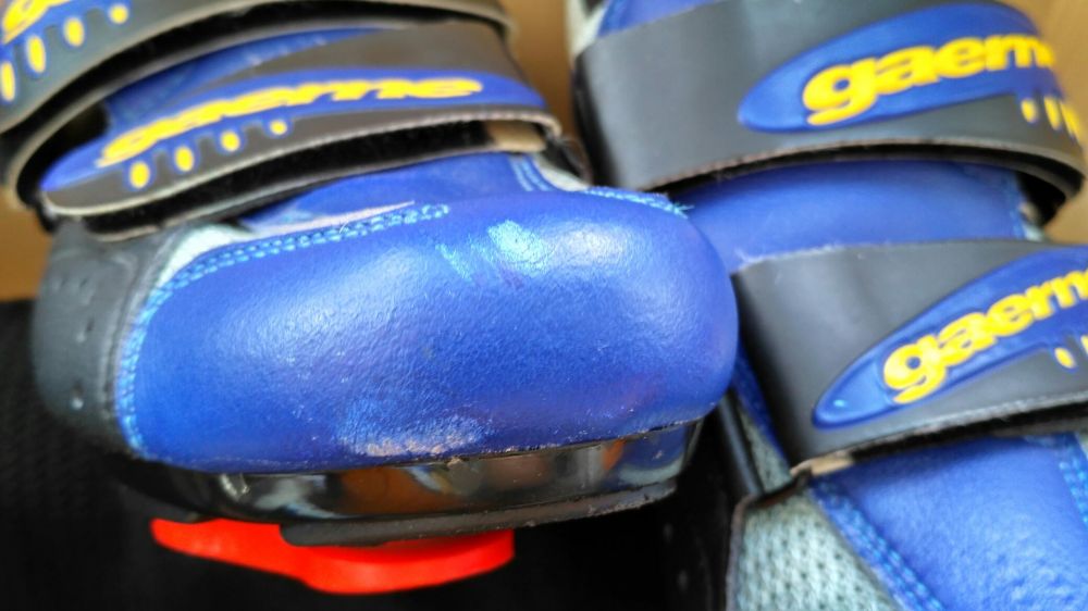 Легкое б/у (есть небольшая шкрябка на носке) + царапки на подошве. Отличная вентиляция. Шипы в комплекте.