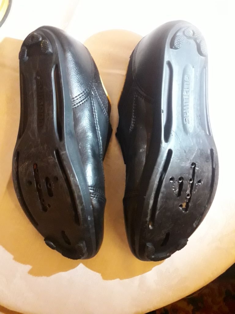 Состояние хорошее, без проблем, подошва под шоссе и мтб контакты, размер 42, длинна по стельки 265 мм.