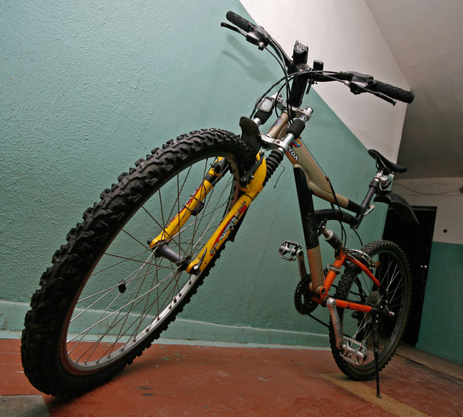 Вообще судьба владельца, думаю, сложилась замечательно, потому что он продавал свои почти новые зап части по причине перехода то-ли на хт, то-ли на хтr, не помню уже... так как кроме руля мне от него досталось и заднее колесо и манетки и задние звезды.