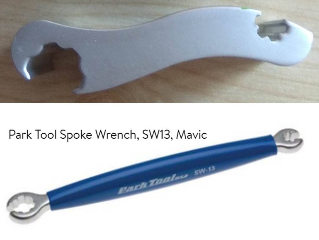 Нужен такой ключ. Варианты, как может выглядеть. Это самый маленький из ключей для спиц Mavic (5.5 или 5.6 мм)