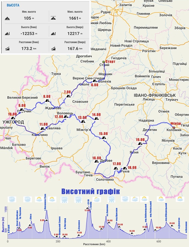 ОПИС МАРШРУТУ ПО ДНЯХ З ТРЕКАМИ, ФОТО та ВІДЕО: