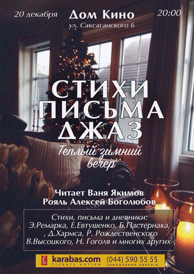 Подаруйте собі та своїм близьким дивовижний вечір, на якому мелодійний джаз, листи і вірші сплетуться воєдино!