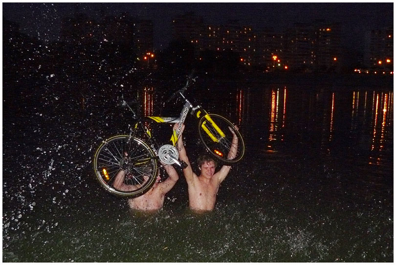 и вручили ценные подарки (смотрите фото!). Затем, купались, общались веселились. Особенно веселым был Parker, который купался с велосипедом!