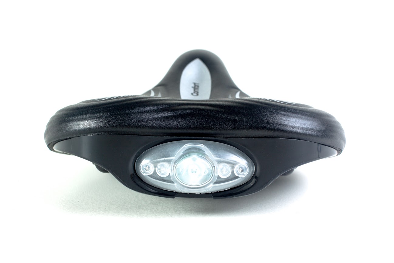 Зручне сідло серії Comfort з вбудованою мигалкою. Широка форма з м’яким наповнювачем на жорсткій пластиковій пластині та сталевих рамках забезпечить надійність та довготривалий термін служби i максимальний комфорт.