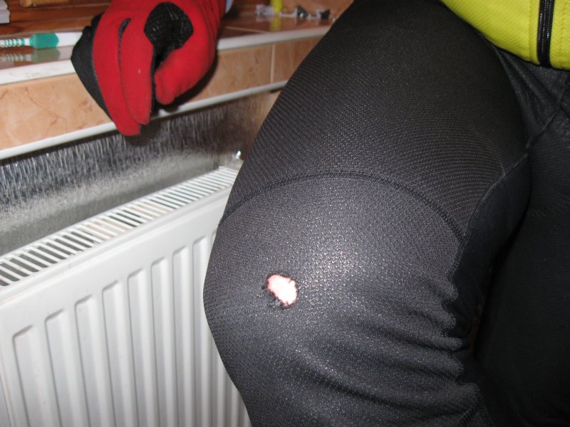 В результате на куртке и рейтузах дыры.