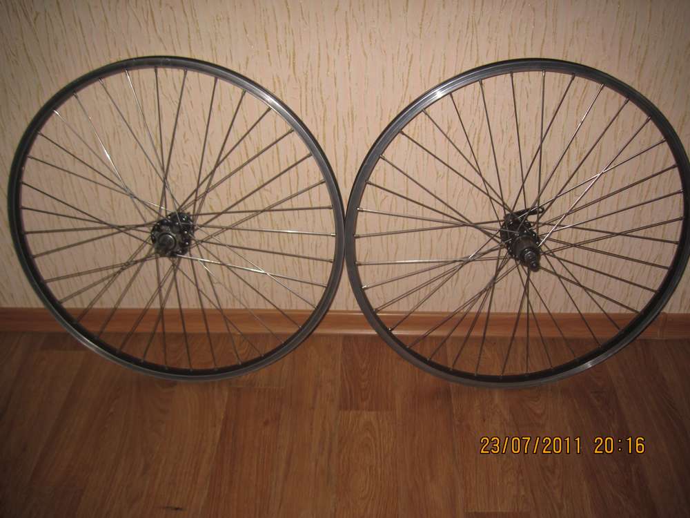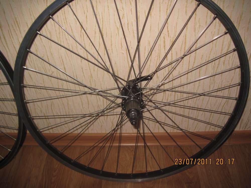 1.Заднее колесо втулка Quando,под кассету, обод ровный без яиц,под престу,одинарный, спицы отличные, нержавеющие .Переднее колесо из той же серии, плюс - есть крепление под дисковый тормоз - Цена - 200 гривен пара