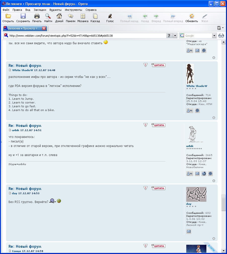 - В списке форумов вынести автора ветки в отдельную колонку - часто ищется ветка по автору и так проще просматриватьRe: Новый форум