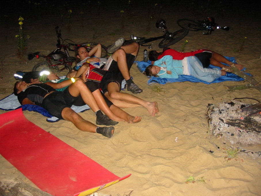 ё-моё, так мы таки спали))) а я думаю, чё я сейчас такой бодрый)Дома. Сидели у костра посреди песков до начала 4-го. На обратном пути приятный сюрприз - пошел ливень, километров за 7 от дома. Приехал весь мокрый, грязный, замерзший и уставший. Все офигенно, пошел спать.