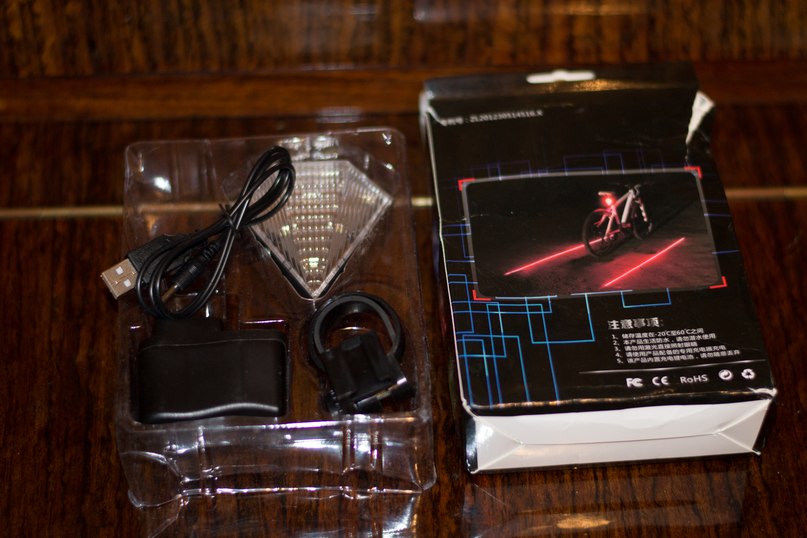 Описание: тыльная мигалка с белыми светодиодами, встроенный аккумулятор (не требует батареек) и два лазера для построения ограничительных полос по бокам. Назначение: безопасность в темное время суток. Яркость: очень яркая. Состояние (малое бу): без дефектов и без глубоких царапин. Сколько я раз заряжал батарею: в буквальном смысле "не более несколько раз", то есть остаток ресурса 99%.