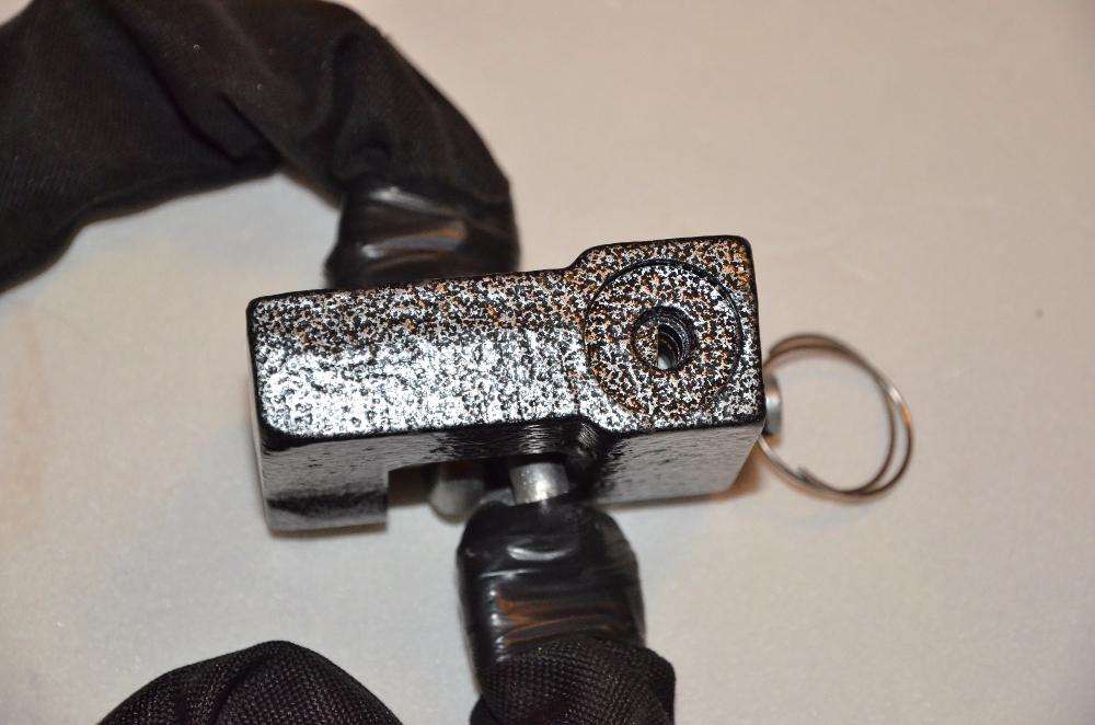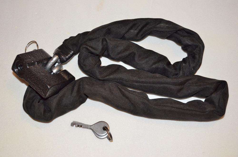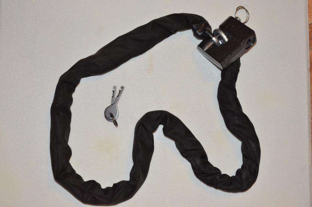 Продаю противоугонная цепь 1,2 м, диаметр прутка 8 мм. Цепь из легированного углеродистого прутка, сварной шов фактически отсутствует. Выполнена цементация, закалка, отпуск и оцинковка – как показали испытания, у болтореза сминаются и крошатся губки. Без проблем выдерживает любую ножовку по металлу. Износостойкий черный чехол из кордуры.