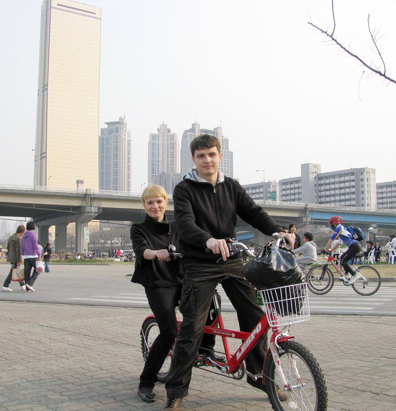 А тут, таки да, одни педали - на троих. Девочку, правда, придется дорисовывать...