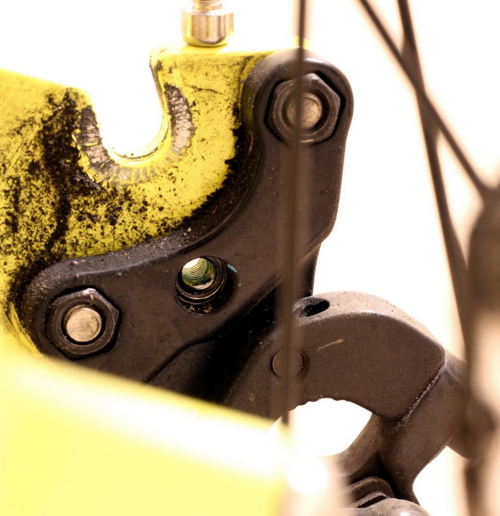 Хочу купить багажник Topeak Super Tourist DX Disc, но меня смущает то, что монтажное отверстие на пере к которому крепится калипер уже занято, причем изнутри (на фотографии 2 отмечено стрелкой).