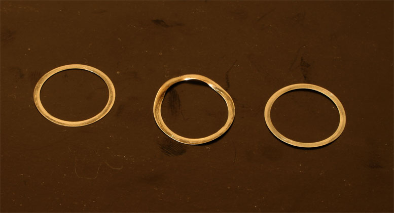 Да, это глюк фотографии - кольцо в одной плоскости, просто к центру бороздки (который на фотографии находится справа) она становится толще. Цвето тоже не желтый, а металлический.а ще я подивився ще раз на твою фотографію злизаного конуса і може я глючу але таку враження що там це кільце-бороздки не в площині паралельній основі конуса а ніби по спіралі...