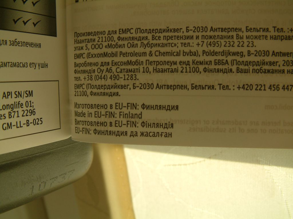 Масло от официального представителя Мобил в Украине.