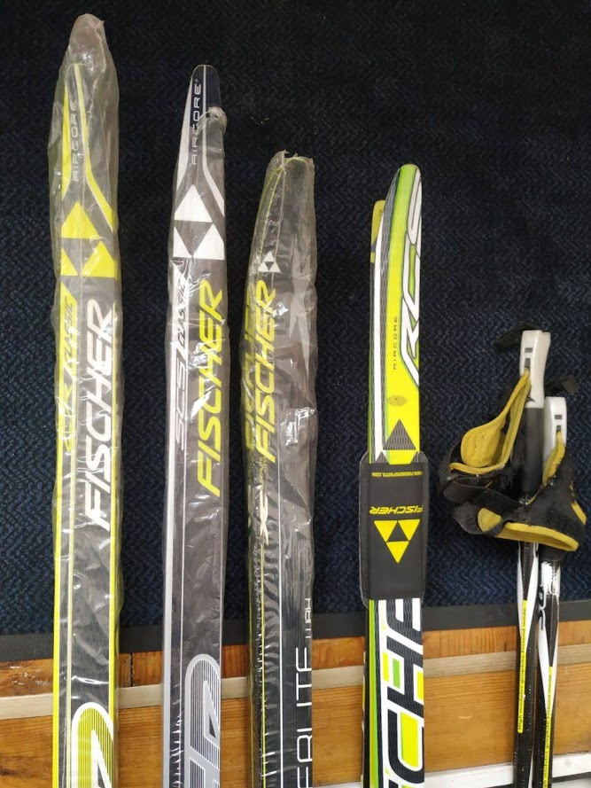 Гоночные беговые лыжи, классика, новые, две пары слева.