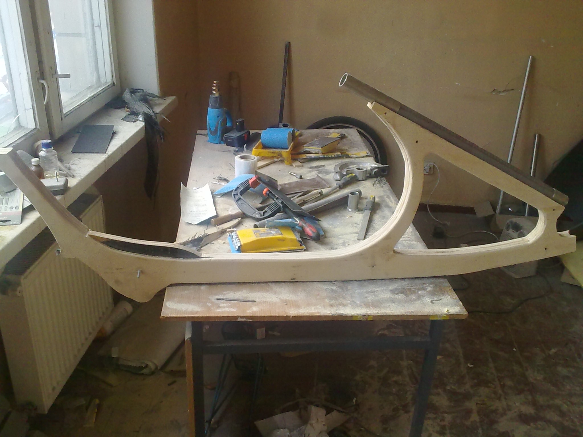 У меня фанера 10мм в 4 слоя клеенная. Порезать в эпицентре можно фанеру сразу под нужные размеры рамы.... А не тянуть 2 листа 1700Х1200 !- сегодня лазил по Лерой Марелин и подумал вместо фанеры толщ. 18 за 203 грн. набрать раму вырезав из сосновых ступеней толщ. 15 по 36 грн. штука. - Тогда уже можно будет и рубаночком тоже форму нормально подогнать. - пока сидел в ванне, принял решение уже завтра сутра 4 шт. и купить.А вместо рашпиля - болгарка с наждачным кругом.