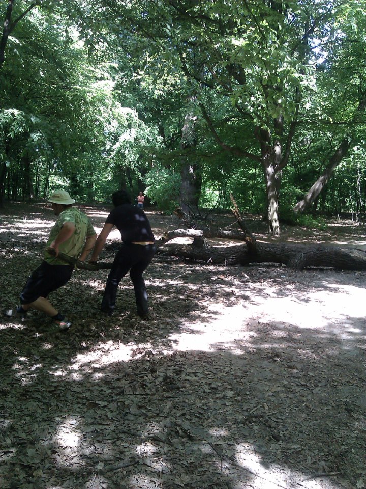 Машину лучше ставить на стоянке около библиотеки по ул. Бауманской (ул. Баумана) или возле спортшколы им. В.Лобановского по ул. Салютной. До стартовой поляны идти почти прямо (если стоять на Бауманской) по парку, оставляя слева футбольное поле.