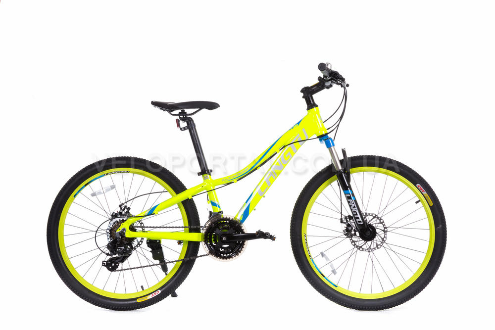 24" - з 21-шв. трансмісією, м'якесенькою амортизаційною вилкою, надійними та яскравими колесами на двостінних ободах та дисковими гальмами - справжній гірський велосипед!
