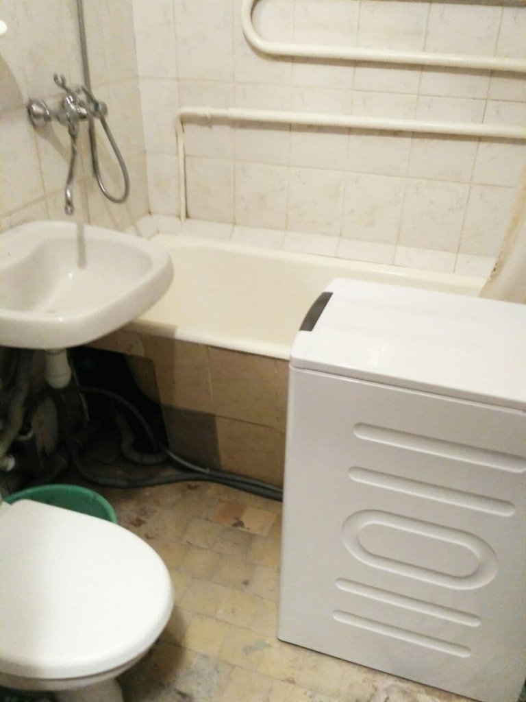 Санузел- старый кафель, ванна год назад покрашена наливной акриловой краской.