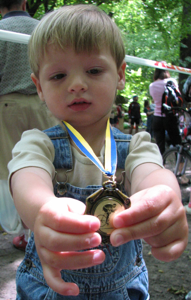 гуляли по набережной вечером, тут глядь - несется чье-то маленькое чудо на лисапеде с медалью на шее ... поулюлюкали вслед - чемпион поехал! :)