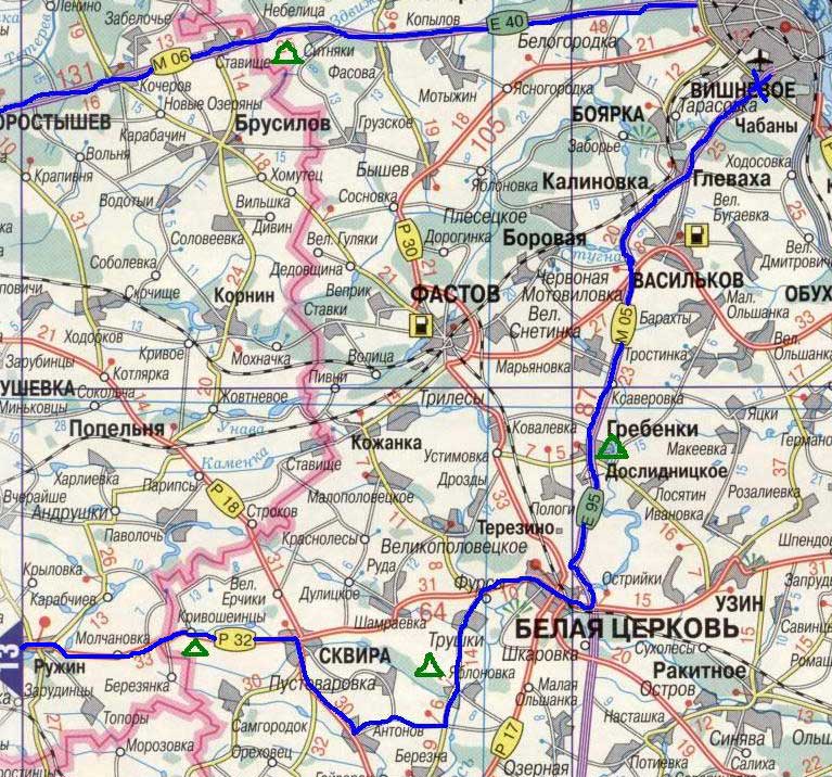 Из Яблоновки вдоль Роси в с.Городище-Пустоваровское, затем с.Антонов и на Сквиру.Андрей, не совсем понятен заезд на "КП" в Яблоновку. БЦ-Фурсы-Трушки-Яблоновка?