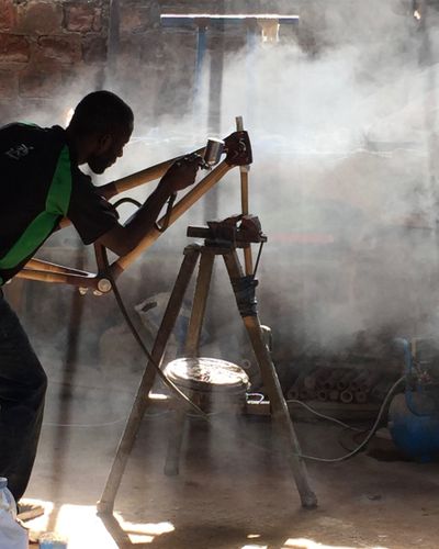 Мешканець Уганди Нурдін Касом майструє рами для велосипедів. Ось тільки замість звичного металу зроблені вони з бамбуку.