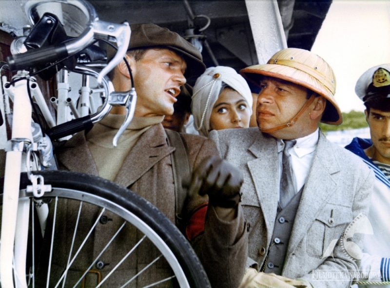✔ Послухайте, щоб швидше доїхати, ви сідаєте на мій велосипед, а я поїду на вашому. (Фільм «Велика прогулянка»)
