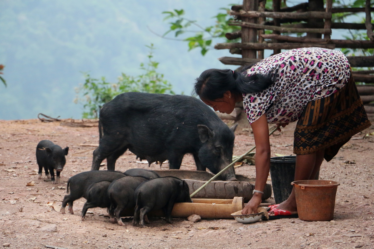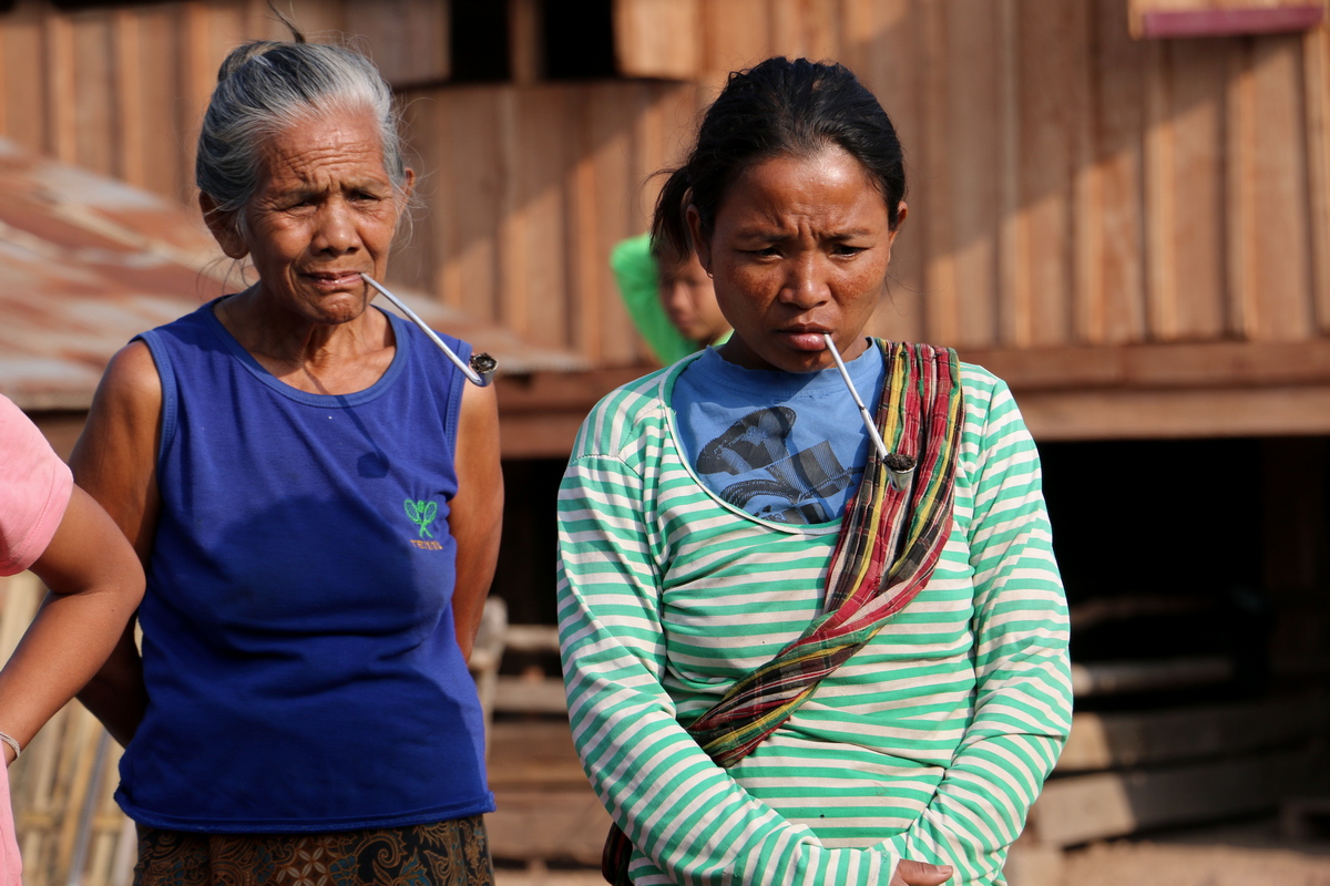 А приїхали ми в це село Ксот перед заходом сонця, от-от мали початись сутінки. В кінці села, біля останньої хати зупинились спитати, де тут можна заночувати, бо до наступного села ще з десяток кілометрів. Поки Володя жестами дізнавався в чоловіків про нічліг, я терміново збивала в блендері Маркові їжу: молоко, банан та рисову муку. Дитя було дуже голодне. В ту мить місцеві жінки, дівчата, хлопці та дітвора дивились живу виставу. Мене обступила довкола юрба – востаннє таке було в Індії два роки тому! – і з завмиранням не зводили погляду від мене та особливо Марка. Декому було смішно, дехто просто дивився, дехто втікав, коли я щось до нього казала. Марко вередував, блендер крутився, Володя розпитував, показуючи папірець, де завчасно було заготовлено найважливіші фрази лаоською (зазвичай ми користуємося перекладачем Гугл, але лаоської мови в режимі офлайн він поки що не має), наприклад: “Де ми можемо поставити намет на ніч?”. Чоловіки довго дивились на ту писанину й нічого не могли зрозуміти. То вже потім в долині нам пояснили, що це плем’я гірських лаосців має свою мову, а лаоську розуміють не всі, тим паче письмо. Але хтось з чоловіків докумекав, чого Володя від них хоче, і відправив його до центру села, себто двісті метрів назад. Для ночівлі нам запропонували порожній будиночок, за порогом якого вже була дорога. Поки Вовчик розглядав апартаменти, Марко, щасливий, вже їв. А разом з ним щасливі були й жителі, особливо молоді мами, що тримали прив’язаних на собі голодупих замурзаних немовлят.