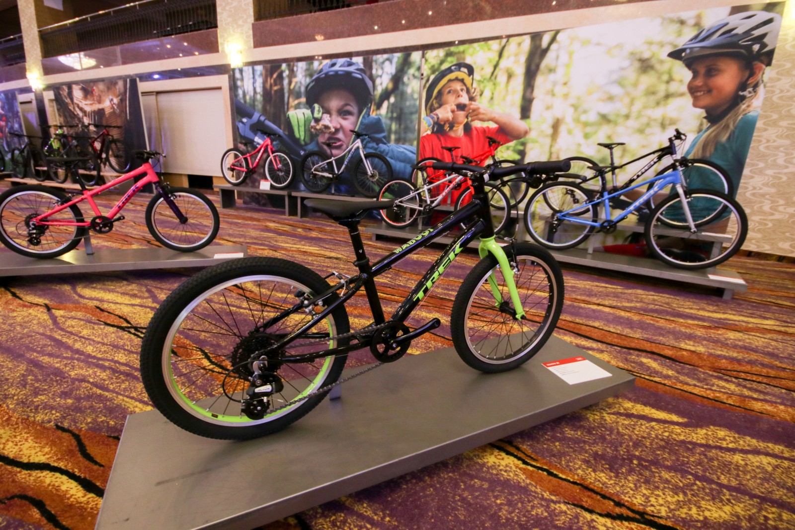 Поруч, нас чекала нова модельна серія з колись популярним іменем Wahoo. Тепер, це серія дитячих полегшених велосипедів на 20 та 24 дюймових колесах. Яскравий зовнішній вигляд, алюмінієва жорстка вилка та надійна задня втулка, комбінація яка зробить велосипед практичним та зручним для маленьких розбишак.
