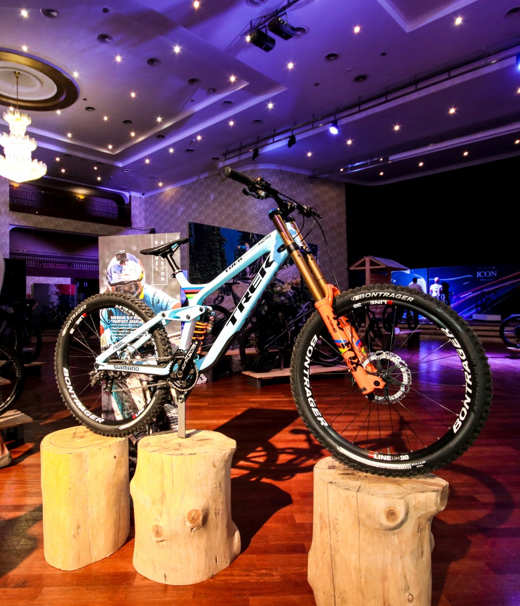 Невеличкий стенд присвячений даунхільним велосипедам прикрашав чемпіонський байк Рейчел Афертон та два красеня Trek Session 29 та Trek Session 8 Park.