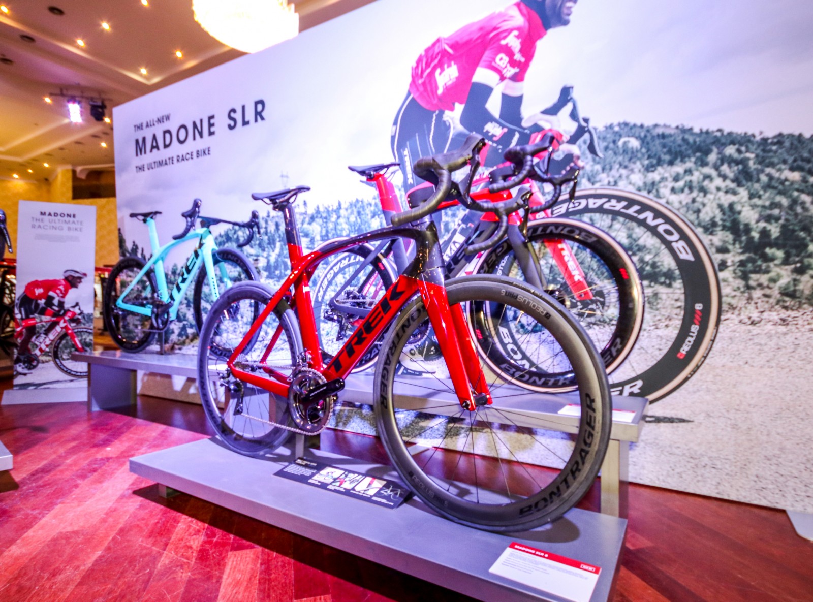 А також представлені топові колеса серії Bontrager XXХ, на яких виступають велика кількість команд з Trek. Наприклад канадку, тендітну Емелі Баті, ці колеса в цьому сезоні привезли на 3 місце в загальному заліку кубку світу.