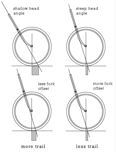 Трейл — це уявна відстань між вертикальною віссю колеса до вісьової лінії кута нахилу головної труби в проекції на горизонтальну поверхню.